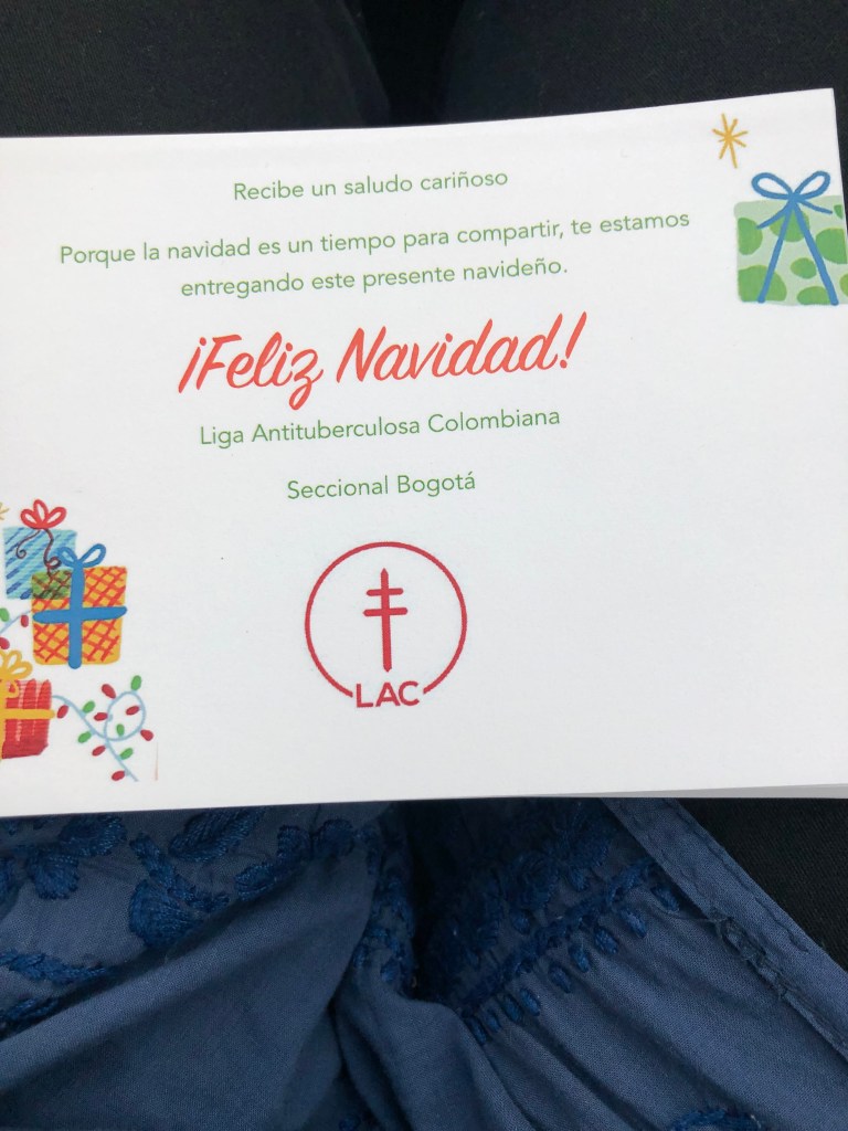 Entrega de regalos de diciembre 30 de diciembre de 20236 de mayo de 2024 por ligaantituberculosacolombiana Aqui hay unas fotos de la entrega de regalos de diciembre en Bogotá. Compartir Haz clic para compartir en Facebook (Se abre en una ventana nueva) Facebook Haz clic para compartir en X (Se abre en una ventana nueva) X Haz clic para enviar un enlace por correo electrónico a un amigo (Se abre en una ventana nueva) Correo electrónico