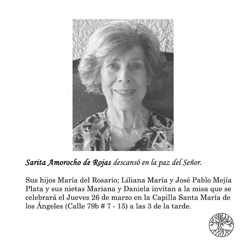 El pasado 24 de marzo, falleció Doña Sarita Amorocho de Rojas. Ella fue de esas mujeres valientes y valiosas, que con su ejemplo, nos dio una lección de solidaridad y amor.